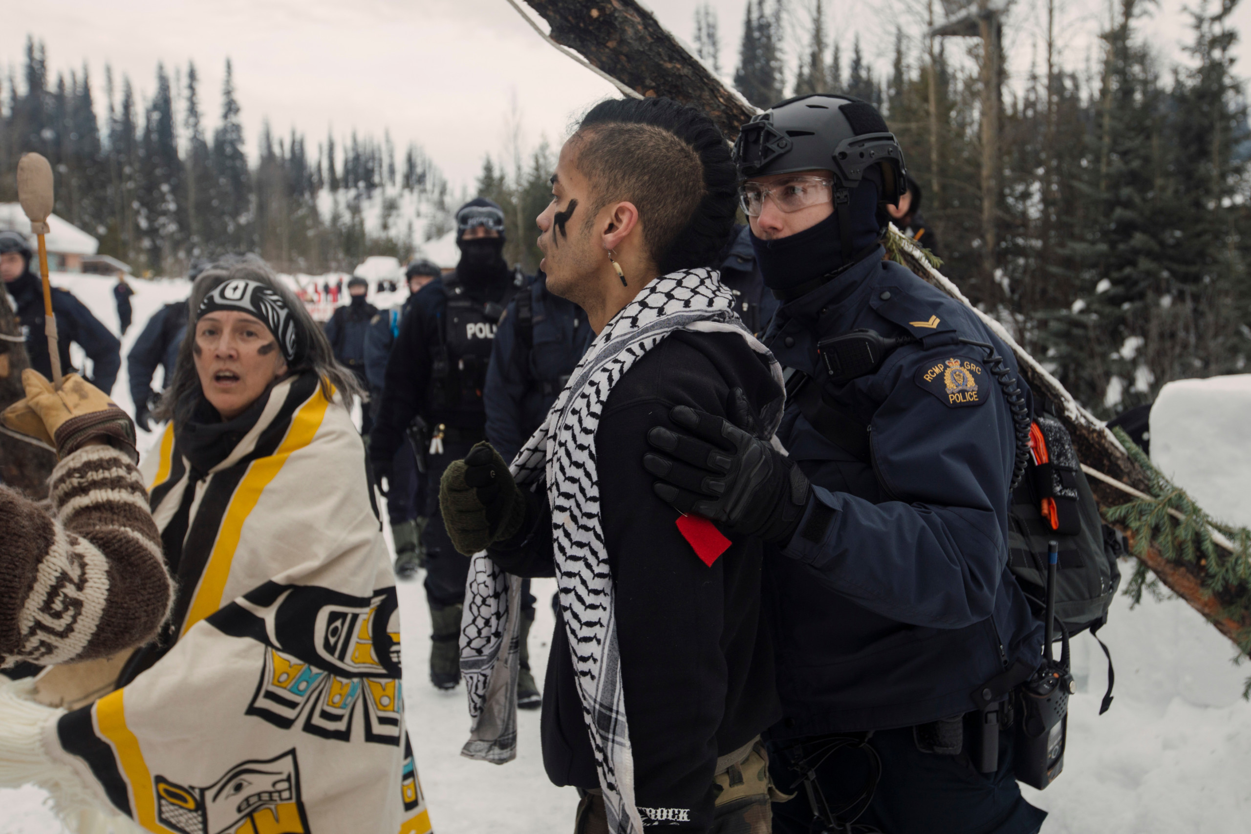 Police raids of Wet’suwet’en land defender camps in February 2020. (Photo: Amber Bracken / The Narwhal).